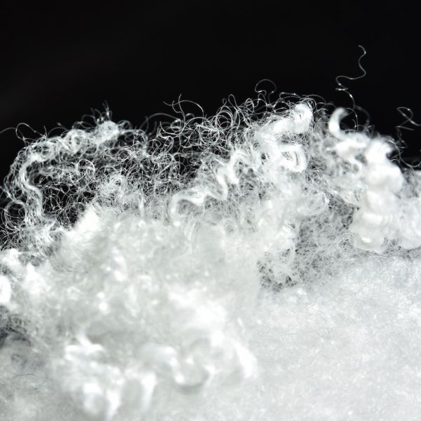 The hollow form that does not fill the section of the fiber and the 3D crimp from heterogeneous polymer provide excellent bulkiness and elasticity and makes light and warm fibers. The lineup includes a product with extra soft feeling obtained through special silicon processing and a product featuring flame retardant property and slick touch through special oiling agent processing.
